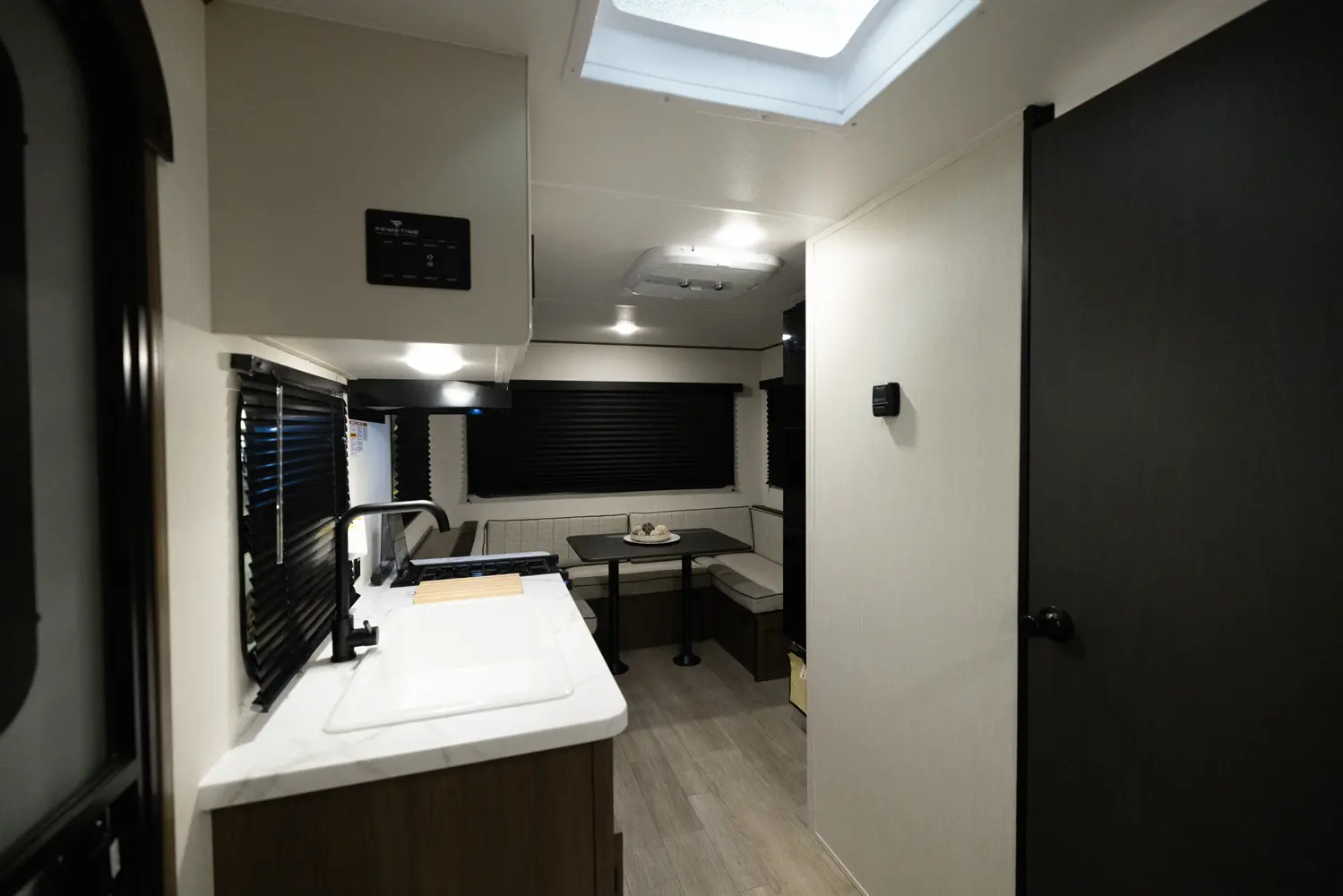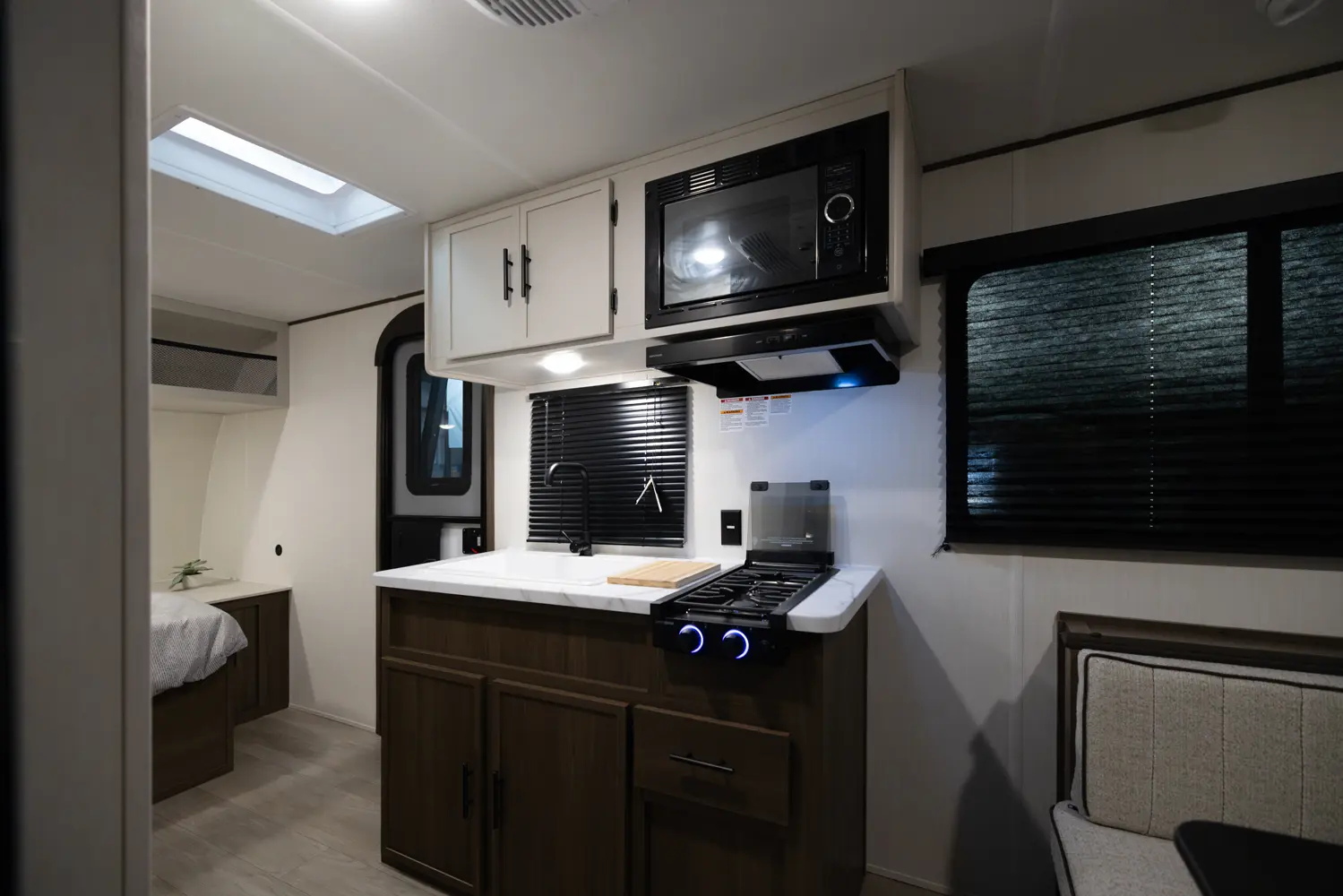 Looking for a simple travel trailer that's easy to tow? The Avenger 16RD by Forest River comes in at 21ft 4in and 3539 lbs; making it towable my most mid-sized trucks and some SUVs! Enjoy a front queen bed, full bathroom, and a large U-dinette that converts into an extra bed. The kitchen features a two-burner cooktop, microwave, and a 12-volt refrigerator. Perfect for your next adventure!
