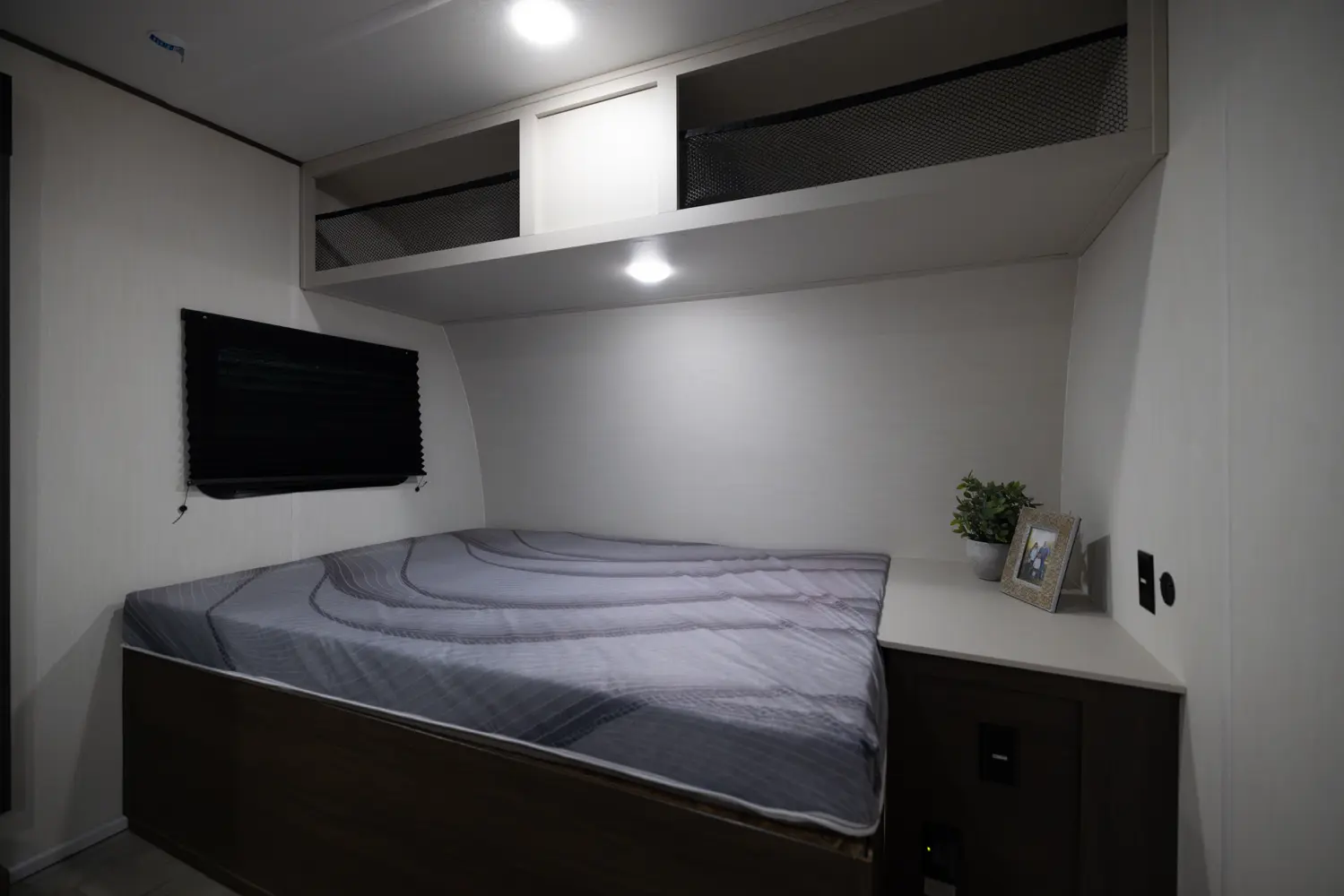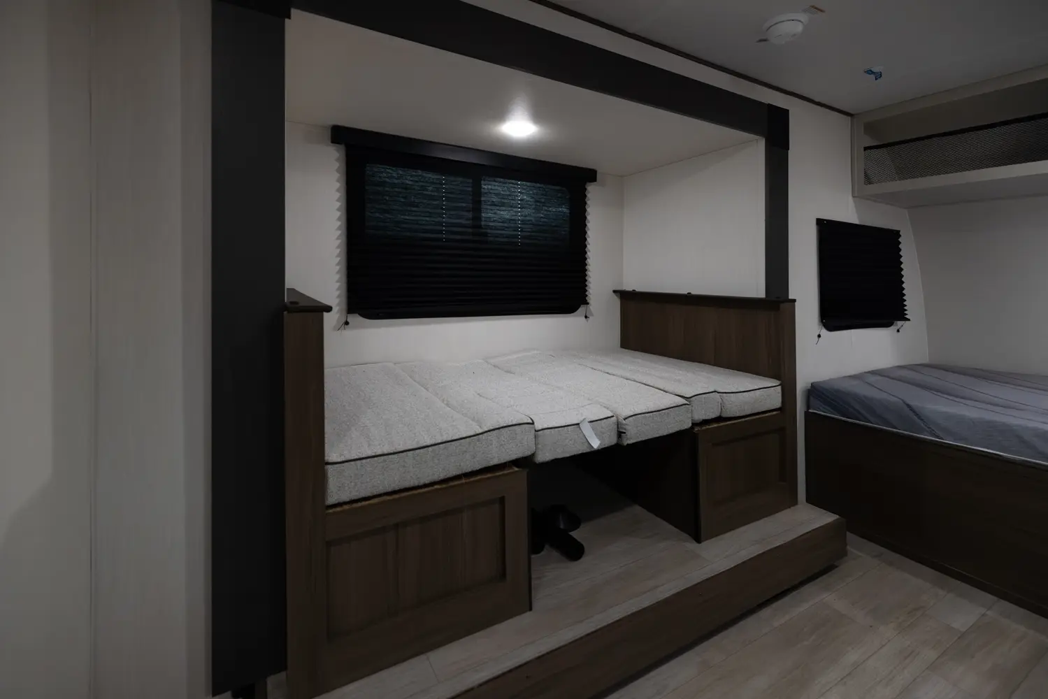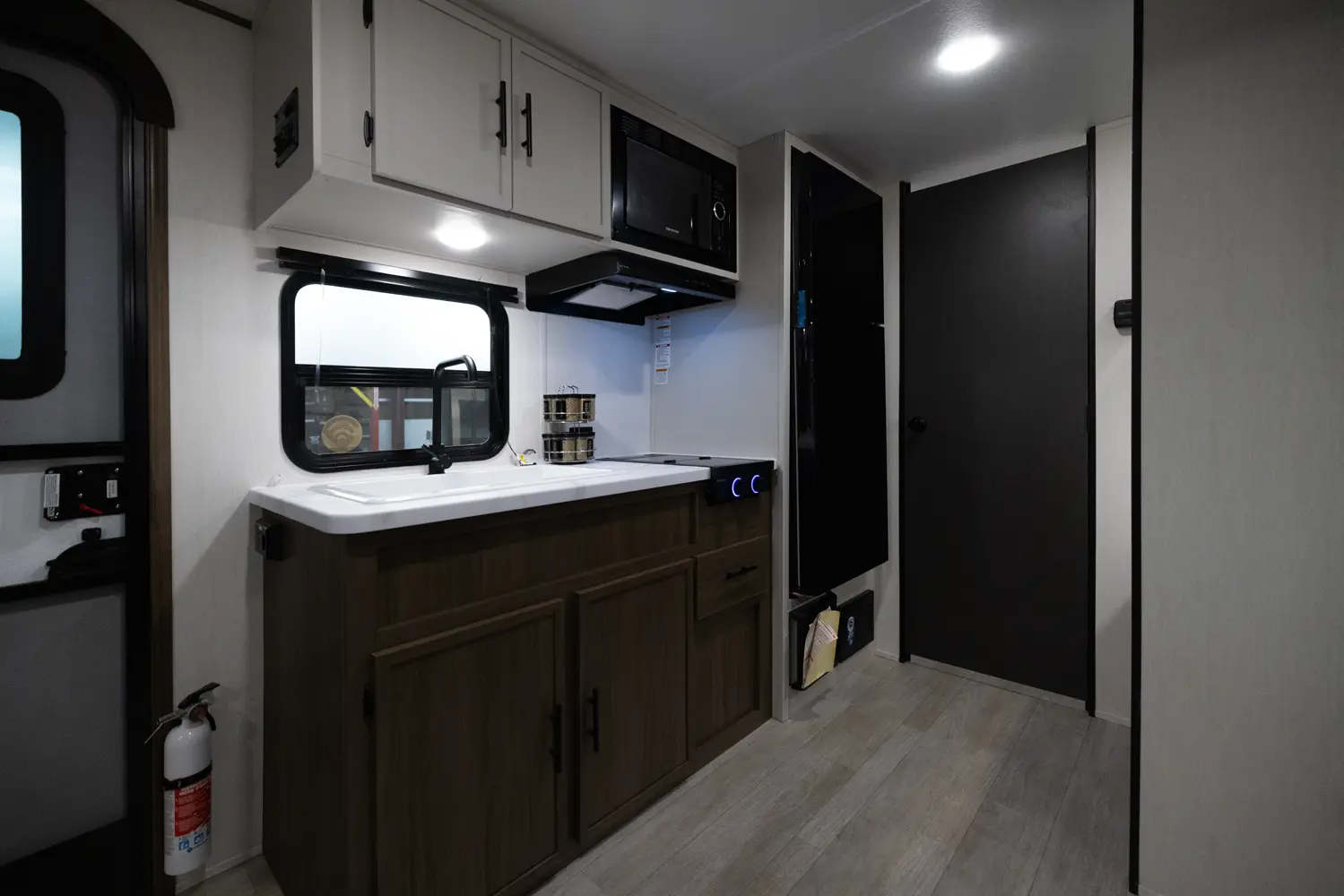 Looking for an easy-to-tow family travel trailer? The Avenger 17BHS by Forest River weighs just over 4,000 lbs! Enjoy a front queen bed with ample wardrobe space and a nightstand., The modern kitchen features a cooktop, microwave and a large 12-volt refrigerator. The dinette slide doubles as an extra bed and the rear bunk room is conveniently located next to the full bath. Perfect for family getaways!