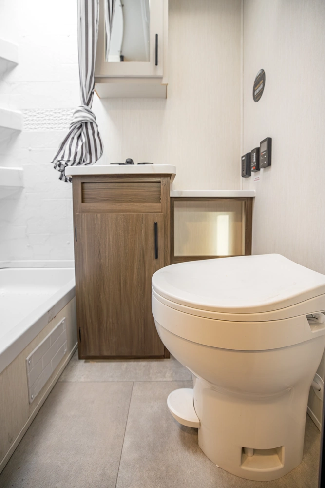 • Extended Height Toilet w/Foot Flush